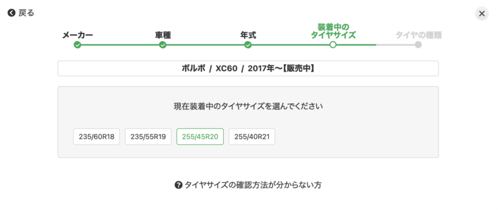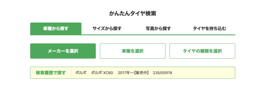 タイヤフッドは車種から適合タイヤを検索できるので非常に簡単です。