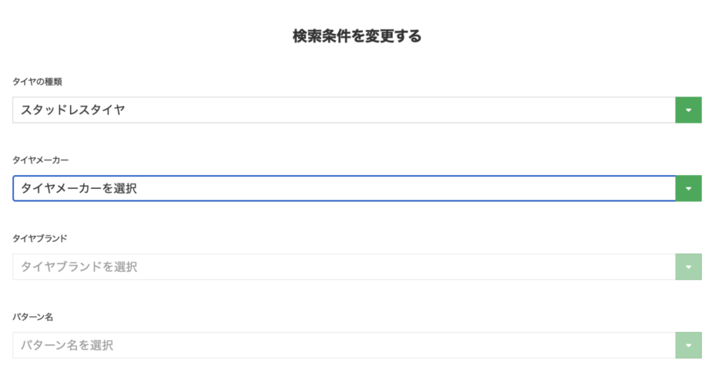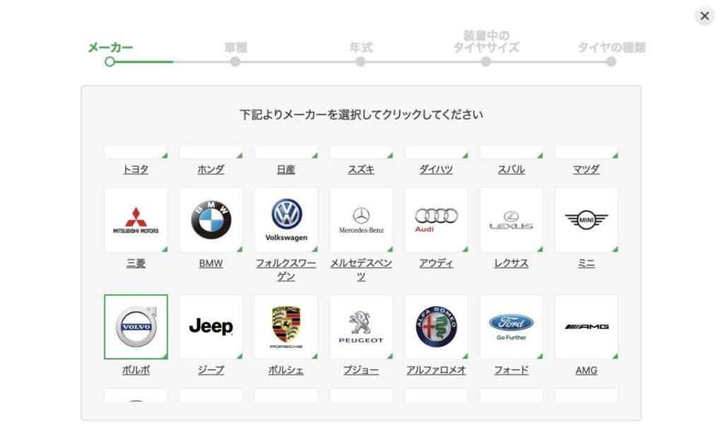 そして、タイヤメーカーから順に選択していきましょう。