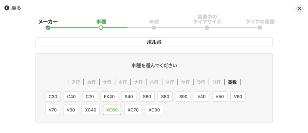 ご自身の乗っている車種を選択します。