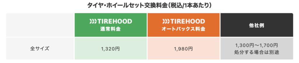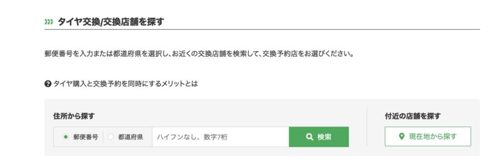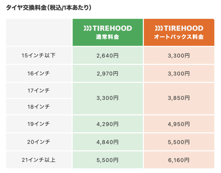 - TIREHOOD自体のサービスではありませんが、取付店に「オートバックス」や一部のガソリンスタンドを選ぶと、その店舗が独自に行っている「タイヤ保管サービス(タイヤホテル)」を当日契約できる場合があります。